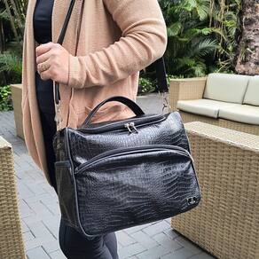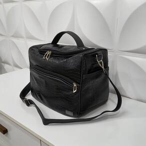 Frasqueira Feminina de Viagem Elegância Preto Croco - Coutre Bolsas - Frasqueira Feminina de Viagem Elegância Preto Croco Alto Padrão - Coutre Bolsas