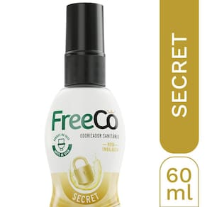 Freecô Bloqueador de Odores Sanitários - Secret 60ml Com fragrância de combinações de perfumes premium, FreeCô é 1º bloqueador de odores sanitários do Brasil, eliminando de forma definitiva o mau cheiro do nº2 e, também, o constrangimento em utilizar o banheiro. Esta versão com 60 ml é ideal para deixar em banheiros e lavabos. Freecô é desodorizador sanitário perfeito para usar na sua casa ou no trabalho.