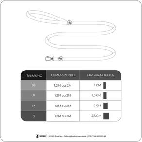 Disponível em tamanhos de 1,2 metros e 2 metros;Tira em Poliéster super macio e resistente é a mesma utilizada em cintos de segurança;Tecnologia inTransfer® garante a estampa com cores mais vivas;Mosquetão com trava de segurança e tecnologia de rotação 360º evita que a fita enrole;TAMANHO P Comprimento - 1,2M ou 2MLargura da fita - 1,5cm