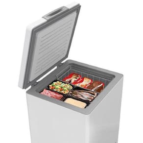 Freezer 100l Midea Horizontal 01 Tampa - Cfa10b1 O Freezer Horizontal Midea 100L é perfeito para quem quer preservar alimentos resfriados, conservados ou congelados de forma rápida. Possui cesto para melhor organização de seus alimentos e graças a versatilidade de suas funções, pode operar tanto como Freezer entre as temperaturas -24C e -18C, quanto como conservador e refrigerador entre as temperaturas 10C e -18C. Possui Selo Procel e classificação Energética A+ para modelo 127V, A para modelo 220V e 10 anos de garantia no compressor.INFORMAÇÕES GERAISCapacidade: 100 LFunções: Resfriar, Conservar e FreezerRange de temperatura: 100 , -12-24CPainel: MecânicoMaterial interno: AlumínioMaterial externo: Aço galvanizadoNúmero de portas: 1Cesto de armazenagem: SimPuxador: Sim fixo Dreno: FrontalRodízio: 2 rodízios somente na base do compressorSuporte do cabo de alimentação: SimLuz Indicadora de Funcionamento: SimFluido Refrigerante: R600aDADOS TÉCNICOSConsumo: 110V: 22 kWh/mês Potência: 110V: 110W / 220V: 100WFrequência: 60 HzPotência sonora dB A : 110V: 42 / 220V: 40Selo Procel e classificação Energética A+ para modelo 127V e A para modelo 220VTemperatura de Operação do Freezer: -18C mínimo / -24C máximo Temperatura de Operação do Refrigerador: 0C mínimo / 10C máximo Temperatura de Operação do Conservador: -12C mínimo / -18C máximo DIMENSÕESAltura: 85 cmLargura: 54,5 cmProfundidade: 49,5 cmPeso: 21 kg DIMENSÕES DA EMBALAGEMAltura: 88,8 cmLargura: 57,8 cmProfundidade: 52 cmPeso: 22 kgCor: BRANCO - Voltagem: 110 VOLTS.