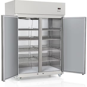 Freezer Conservador Comercial Inox Vertical 2 portas GCCS2P Gelopar. Conservação e Exposição de produtos congelados. Refrigeração: Ar forçado com evaporador aletado. Temperatura: -16 a -20C. Degelo: Automático. Controlador eletrônico com indicador de temperatura. Revestimento Interno: Aço Inox 304. Revestimento Externo: Revestimento Externo (frente e laterais): Aço Revestido com Película Tipo Inox. Portas: Cegas. Fechamento automático e sistema de trava. Prateleiras: 4 níveis, aramadas, reguláveis em Aço Inox 304. Gabinete com rodízios e travas. Construção do Gabinete: Monobloco. Parte Frontal e coluna com resistência no quadro de portas. Estrado em PVC na Base. CONSUMO: 16,85 kWh/dia. CAPACIDADE: 1421L. TEMPERATURA: -16 °a -20°C. PESO: 177 Kg. DIMENSÕES EXTERNAS: (CxAxL): 140x205x97,6cm. Equipamento certificado conforme Portaria Inmetro nº 371/2009. Freezer Conservador Comercial Inox Vertical 2 portas GCCS2P Gelopar é na Atau.