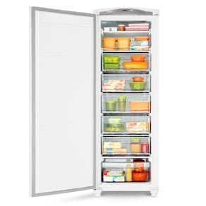 Mais espaço para armazenar seus itens perecíveis e mais espaço para sua casa! O Freezer Consul é um freezer vertical, ou seja em pé como uma geladeira convencional, o melhor disso é que ele ocupa menos espaço com uma grande capacidade de 246L. Não vai faltar espaço! Muito mais prático de separar os alimentos, pois possui Gavetas Organizadoras. Confira mais detalhes: