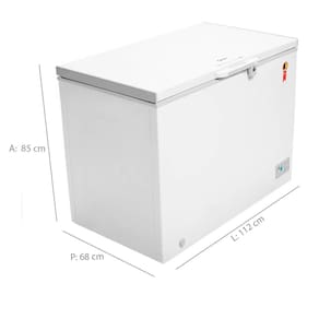 Mantenha seus alimentos sempre conservados no Freezer Horizontal Midea 295L. Ele traz quatro funcoes para resfriar, conservar e congelar, atraves do termostato externo com 9 opcoes de temperatura. Alem disso, a funcao Freezer + possibilita resfriar os alimentos de forma mais rapida. Pratico, possui abertura de porta superior com puxador ergonomico e rodizios que ajudam no transporte; seu dreno frontal para escoamento da agua do degelo facilita na hora da limpeza. Tambem acompanha um cesto aramado para organizacao dos alimentos e fechadura com chave. Nao agride a camada de Ozonio, pois e livre de CFC. Temperatura de Operacao Freezer: minimo de -28C e maximo de -12C. Temperatura de operacao do conservador/refrigerador: minimo de 0C e maximo de 10C.