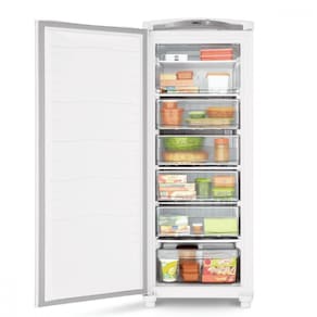 O Freezer Vertical Consul CVU26 de 231 litros é a escolha ideal para quem precisa de espaço e organização. Com várias gavetas e prateleiras que ajudam você a encontrar rapidamente o que procura e um prático controle de temperatura externo, ele une grande capacidade, eficiência e um design moderno para a sua casa.