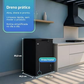 Freezer Horizontal HQ 105 L 16 kWh/mês, dreno frontal e silêncio de 41 dB