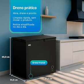 Freezer Horizontal HQ 210 L 24,84 kWh/mês, dreno frontal e silêncio de ~41 dB