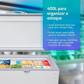 Capacidade ideal para armazenar carnes fracionadas, caixas de hambúrguer, vegetais, polpas, sobremesas congeladas, gelo para eventos e promoções. Também é ideal para aliviar o congelador da geladeira ou substituir freezers menores.