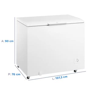 Características: Marca: Electrolux Modelo: HI330 Capacidade total: 320 litros Capacidade líquida: 314 litros Tipo de degelo: Cycle defrost Tipo de freezer: Horizontal Modos: Congelador e refrigerador Painel: Externo Quantidade de portas: 1 porta Controle de temperatura: Sim Dreno: Sim Pés com rodízios: Sim Eficiência energética: A++ Consumo: 390 kWh/mês Frequência: 60 Hz Inmetro: Sim Origem: Nacional