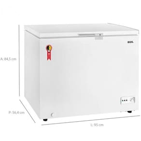 Características: Marca: EOS Modelo: Eco Gelo EFH250X - B15916 Capacidade líquida: 192 litros Tipo de degelo: Manual Tipo de freezer: Horizontal Modos: Congelador e refrigerador Painel: Externo Quantidade de portas: 1 porta Controle de temperatura: Sim Temperatura: Conservador, pode atingir até +8 graus - Freezer, pode atingir até -18 graus Material interno: Aço Dreno: Sim Pés com rodízios: Sim Travamento da porta com chave: Sim Cestos internos: Sim Frequência: 60 Hz Inmetro: Sim