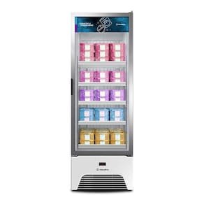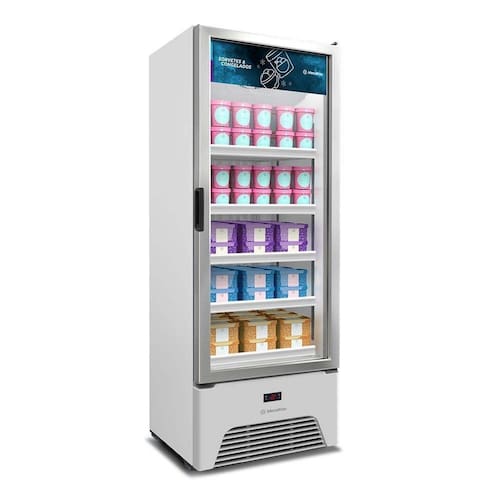 Expositor Vertical Frost Free VF50 Optima 581 Litros Metalfrio. Ideal para supermercados, restaurantes, bares e similares. Sistema de Degelo Frost Free: degelo automático. Confiabilidade e exposição máxima para sorvetes e congelados. Controle de Temperatura: Controlador eletrônico. Faixas de Temperatura: Freezer -18°C / -22°C. Prateleiras: 4 prateleiras reguláveis + 1 prateleira de fundo. Controlador Eletrônico Digital garante melhor desempenho do sistema de refrigeração. Gás ecológico, iluminação em LED, limpeza do condensador, porta com vidro antiembaçante. CAPACIDADE: 581 Litros. TEMPERATURA: Freezer -18 / -22°C. POTÊNCIA: 540W. ARMAZENAMENTO: 275 Potes de Sorvete 500ml e 90 Potes de Sorvete 2l. PRATELEIRAS: 5 (4 prateleiras reguláveis + 1 prateleira de fundo). PORTAS: 1. PESO: 131,2Kg. DIMENSÕES EXTERNAS(CxAxL): 67,5x205,7x79,5cm. Com os Selos de Qualidade ISO 9001 e de Gestão Ambiental ISO 14001. Expositor Vertical Frost Free VF50 Optima 581 Litros Metalfrio é na Atau.