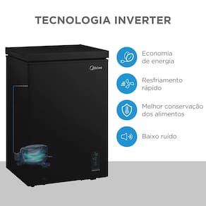 Tecnologia Inverter: Oferece resfriamento rápido com temperatura estável, preservando alimentos por mais tempo com máximo silêncio e economia de energia.