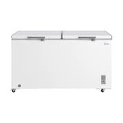 O freezer Midea horizontal tem capacidades que variam de 100 a 295 litros, atendendo a diversas necessidades;
