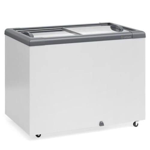 Conservador Plano Vidro Reto Deslizante 295L GHD300CZ Gelopar. Conservação e exposição de sorvetes e produtos congelados. Temperatura: -16° a -20°C. Refrigeração: Estática com serpentina. Unidade condensadora com ar forçado. Controle de Temperatura: Termostato. Degelo: Manual. Colarinho em ABS com cabeceiras injetada. Tampas: Vidros temperados, deslizantes e baixo emissivo. Revestimento: Interno e externo em Aço pré-pintado branco. Dreno frontal com tampa. Gabinete com rodízios. CAPACIDADE: 295L. CONSUMO: 2,77kWh/dia. CAPACIDADE DE CESTOS: 4. PESO: 51kg. DIMENSÕES EXTERNAS(CxAxL): 108,5x85,5x68,7cm. Equipamento certificado conforme Portaria Inmetro nº 371/2009. Conservador Plano Vidro Reto Deslizante 295L GHD300CZ Gelopar é na Atau.
