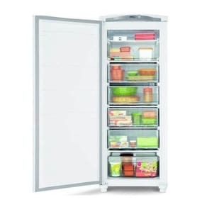 O Freezer Vertical Consul CVU26 possui capacidade para 231L e conta com várias gavetas e prateleiras para ajudar você a encontrar rapidamente o que procura. Conta com compartimento de congelamento rápido com acionamento no painel frontal, que proporciona melhor preservação das propriedades naturais dos alimentos. E também, Controle de temperatura externo, que facilita o ajuste da temperatura de congelamento e evita abertura de porta, economizando energia e ainda conta com 4 cestos removíveis com trava de . Gavetão Multiuso Transparente, além de deixar tudo organizadinho, você consegue ver o que está guardado lá dentro sem nem abrir a gaveta. Seu design de encher os olhos combina direitinho com a sua geladeira Consul e com a decoração de bom gosto da sua cozinha.