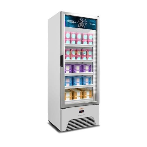 - Porta de vidro antiembaçante: facilita a visualização interna e exposição do produto, gerando o desejo de compra por impulso no cliente;
