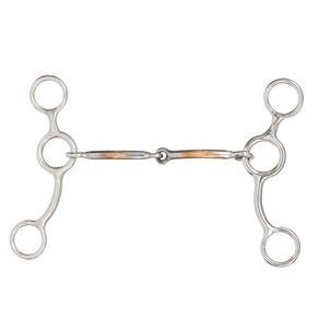 Freio modelo Bolinha da nossa marca exclusiva Bronc-Steel, fabricado com hastes de aço inox articuladas e bocal de ferro liso com banho em cobre articulado.