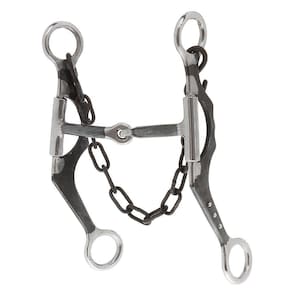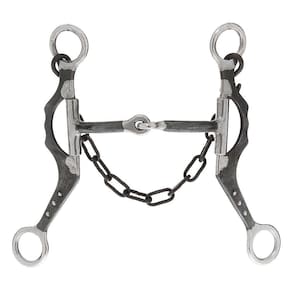 Freio bridão Vinagre fabricado em ferro e aço inox, bocal liso articulado de ferro e hastes articuladas. Acompanha barbela de corrente ferro.