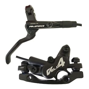 O freio veloforce velo4 é um novo sistema de freio de 4 pistões. Ele é leve com um design fino e pistões de 4x16mm fornecendo uma força de frenagem poderosa e modulada nos rotores. Perfeita para todas as condições de pilotagem o velo4 é o sistema de freio ideal para ambientes mais desafiadores