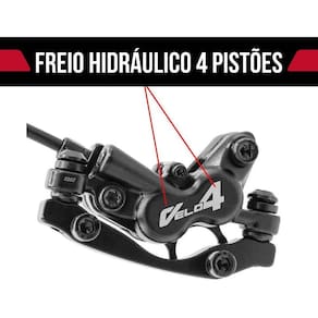 O freio veloforce velo4 é um novo sistema de freio de 4 pistões. Ele é leve com um design fino e pistões de 4x16mm fornecendo uma força de frenagem poderosa e modulada nos rotores. Perfeita para todas as condições de pilotagem o velo4 é o sistema de freio ideal para ambientes mais desafiadores