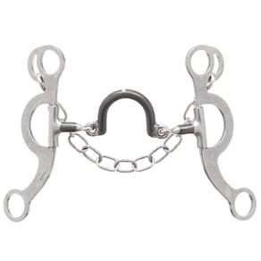 Freio Fernandinho Maluco marca Vinagre com hastes articuladas em aço inox, bocal de ferro também articulado com portal alto de ferro e barbela de aço inox.