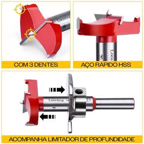 Fresa Broca Forstner 35mm para Dobradiça Caneco com Limitador de Profundidade Fresa com dente de vídea/metal haste 8mm diâmetro 35mm duro tipo Forstner indicada para trabalhos em madeira e derivados na colocação de dobradiças tipo caneco. - Marca: Dremax - Referência: BRF35 - Fresa dobradiça tipo caneco 35 mm com 3 dentes - Fresa com dente de vídea/metal duro indicada para trabalhos em madeira e derivados na colocação de dobradiças tipo caneco - Possui 3 dentes de vídea/metal duro, conferindo maior durabilidade - Diâmetro do corte: 35mm - Haste diâmetro x comprimento :8 mm x 20 mm / 12 mm x 25 mm - : 90 dias contra defeitos de fabricação Marca: Não Informado Ean: 7734625991933