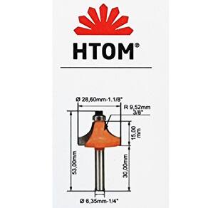 Com diâmetro de corte de 1-1/8 Pol. 28,6mm e haste de 1/4 Polegada 6,35mm , essa fresa possui um comprimento total de 53mm e um raio de 9,52mm. É perfeita para cortar, aparar, entalhar, nivelar e fazer acabamentos gerais em madeira.