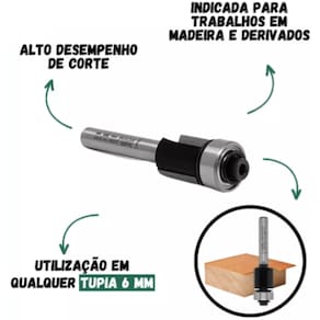 Especificações técnicas: - Encaixe Haste: 6mm. - Corte: 12,7mm. - Profundidade: 13mm. - Tamanho total da fresa: 55,5mm.