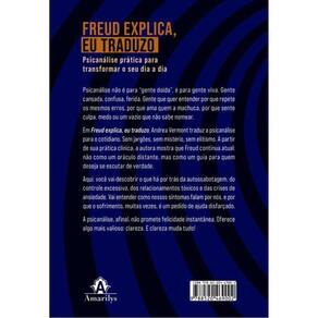 A psicanálise é, antes de tudo, um convite ao encontro com o que somos, com o que sentimos, tememos e escondemos de nós mesmos. Não se trata de eliminar o sofrimento, mas de escutá-lo. De reconhecer nas repetições, nas ansiedades e nos vazios sinais de algo que pede sentido. Em Freud explica, eu traduzo, Andréa Vermont abre espaço para essa escuta. Com linguagem clara e sensível, ela mostra que compreender nossos sintomas é abrir caminho para uma vida mais consciente, menos automatizada. Entre o humor e a dor, o leitor é levado a perceber que a cura não está em apagar o passado, mas em poder olhá-lo com outros olhos, os da verdade e da coragem. Afinal, como diz a autora, “não é o inconsciente que nos assusta; é o quanto ele nos revela sobre quem realmente somos”.