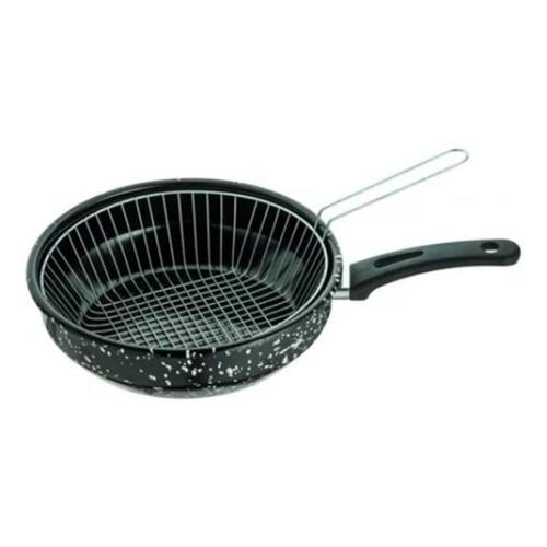 Frigideira fritadeira em aço esmaltado, ideal para você que deseja fritar os alimentos sem que fiquem gordurosos. Possui cesto escorredor de gordura que evita o encharcamento e também lhe dá segurança ao retirar os alimentos da fritadeira. Este produto possui revestimento esmaltado, prático e de fácil limpeza com longa durabilidade e fácil conservação, ideal para batata frita, pastéis, coxinhas, queijinhos entre outros. Alimentos fritos mais saudáveis e sequinhos.