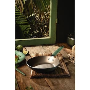 A praticidade que você precisa em sua cozinha está na frigideira Tramontina Lyf em alumínio com revestimento interno e externo em antiaderente Starflon Max verde 24 centímetros de diâmetro. Desenvolvida com corpo de alumínio com espessura de 2 milímetros e revestimento interno e externo em Starflon Max, ela proporciona cozimento rápido e uniforme dos alimentos, sem que eles grudem em sua superfície. Para sua segurança, seu cabo é em termoplástico de engenharia de alta resistência, que é 100% reciclável e oferece maior segurança e conforto durante o manuseio. Além de todas essas características, ela pode ser utilizada nos fogões a gás, elétricos e vitrocerâmicos - resistência elétrica, garantindo toda a versatilidade que você merece em sua cozinha. Escolha Tramontina e eleve o nível do preparo de suas refeições!