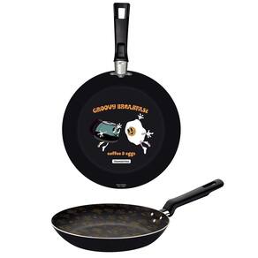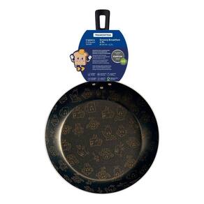 Frigideira 24cm Tramontina Antiaderente Groovy Breakfast Cor: Preto A frigideira Tramontina Groovy Breakfast em alumínio com revestimento interno em antiaderente Starflon Max e externo siliconado estampado 24 centímetros de diâmetro é a escolha perfeita para quem busca qualidade e praticidade na cozinha. Com seu design moderno e funcional, essa frigideira é ideal para uso diário e permite o preparo das mais variadas receitas, desde um simples omelete até legumes salteados cheios de sabor. Uma das principais características dessa frigideira é o seu revestimento interno em antiaderente Starflon Max, que evita que os alimentos grudem, facilitando a limpeza e garantindo um cozimento uniforme. Seu cabo é em baquelite antitérmico, material que proporcionam segurança e conforto durante o manuseio. Muito versátil, a frigideira Tramontina Groovy Breakfast pode ser utilizada em fogões à gás e elétrico, se adaptando facilmente às diferentes cozinhas. Sua estrutura em alumínio garante durabilidade e resistência, tornando-a uma opção confiável para o dia a dia. Com a Tramontina, você tem uma aliada na preparação de deliciosas refeições, com um produto que une qualidade, durabilidade e versatilidade Informações Gerais Corpo de alumínio com espessura de 2 mm que proporciona cozimento rápido e uniforme. Revestimento interno e externo de antiaderente Starflon Max que não gruda, é fácil de limpar, mais durável e não é prejudicial à saúde, pois é livre de PFOA. Cabo de baquelite antitérmico que oferece segurança durante o manuseio. Pode ir à máquina de lavar louças facilitando seu dia a dia. Pode ser utilizada nos fogões: gás e elétrico. Recomendações de uso A capacidade volumétrica máxima para cozimento é de 3/4 da capacidade total da peça. Posicione o cabo do utensílio voltado ao centro do fogão. Em fogões com grade, centralize a peça sobre a chama ou fonte de calor e alinhe o cabo com a grade. Utensílios quentes devem estar fora do alcance das crianças. Antes do primeiro uso, lave com esponja macia, sabão neutro ou detergente líquido. Depois de secar, unte a área interna com óleo ou gordura e leve ao fogo por um ou dois minutos. Deixe esfriar e lave novamente. Seu utensílio Starflon está pronto para uso com ou sem gordura, sempre em fogo baixo ou médio nunca superior a 260 C . Para mexer os alimentos use somente utensílios de silicone, nylon ou madeira. Este produto não necessita de manutenção, apenas limpeza. Limpeza: Evite a imersão do utensílio quente em água fria. Nunca utilize produtos abrasivos na lavagem. Se deixar queimar alimentos, umedeça a área e até que possa remover os resíduos grudados com esponja e sabão. Para descarte do produto e embalagem siga as orientações de reciclagem vigentes. Marca: Não Informado