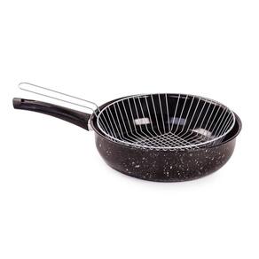 - Frigideira esmaltada com diâmetro de 26cm - Cesto fritadeira preta com capacidade de 2,7 litros - Metal esmaltado com cabo Baquelite - Medidas: 7 x 27 x 38cm A x L x C - Versátil e ideal para fritar diversos alimentos - Revestimento esmaltado que evita que os alimentos grudem - Fácil de limpar - Design moderno e elegante - Perfeita para uso doméstico