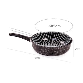 Feita em metal esmaltado com cabo Baquelite, essa frigideira é resistente e durável. Seu diâmetro é de 26cm, proporcionando espaço suficiente para fritar grandes porções de alimentos. Além disso, suas medidas são de 7 x 27 x 38cm A x L x C , o que a torna compacta e fácil de armazenar.