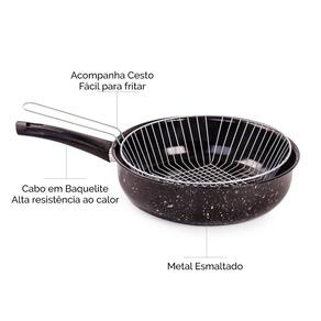 Aproveite a praticidade e a qualidade da Frigideira Esmaltada 26Cm + Cesto Fritadeira Preta 2,7Lts e tenha alimentos fritos perfeitos em sua casa. Adquira já a sua e desfrute de refeições saborosas e saudáveis.