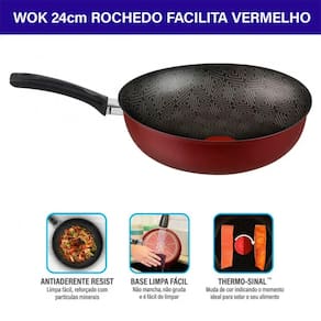 FRIGIDEIRA WORK ROCHEDO 2,7L FACILITA ANTIADERENTE: A Frigideira Wok Rochedo Facilita, com capacidade para 2,7 litros, é ideal para quem busca durabilidade, resistência e qualidade na cozinha. Destaca-se por seu revestimento antiaderente Resist 3X, uma tecnologia inovadora que garante maior robustez e performance. O revestimento é reforçado com partículas minerais, proporcionando uma camada mais resistente e prolongando a vida útil da panela, ideal para quem deseja um produto que dure por anos.