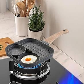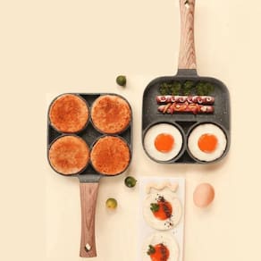 Design exclusivo: a diferença das frigideiras comuns com as quais nossas frigideiras para ovos são projetadas com 3. A frigideira frita permite que você cozinhe 3 alimentos ainda mais diferentes simultaneamente, em vez de ter que limpá-lo sempre que grelhar um. É fácil para você fritar varanda, ovos, panquecas e bifes separadamente. O interior tem design listrado que deixa mais delicioso.