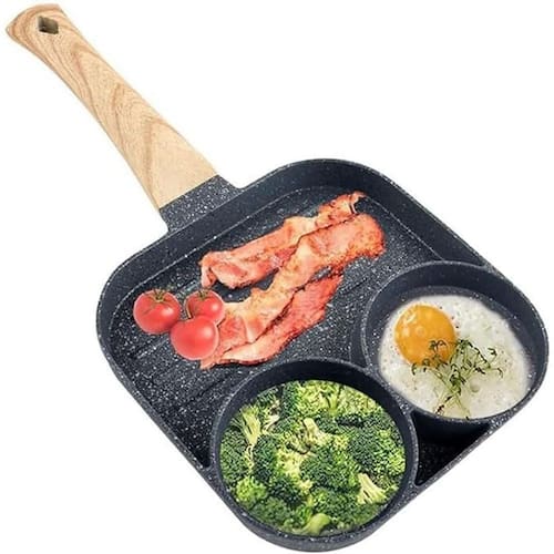 Descubra uma nova forma de cozinhar com mais praticidade e eficiência. Diferente das frigideiras comuns que exigem tempo e atenção redobrada para preparar cada alimento, nossa frigideira antiaderente com três divisórias revoluciona sua experiência na cozinha. Agora, você pode fritar ovos, hambúrgueres e muito mais de uma só vez, economizando tempo e garantindo que cada alimento fique no ponto certo, sem grudar ou perder sabor. Ela é a escolha perfeita para quem busca conveniência e qualidade no preparo das refeições diárias.