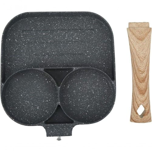- Linha: Frigideira antiaderente com três divisórias circulares.