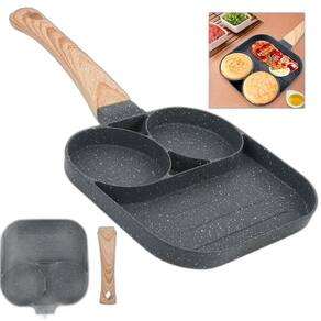 Frigideira 3 Em 1 Panela Antiaderente Ovo Hamburguer Carne Características: A superfície interna da frigideira é tratada com revestimento antiaderente, proporcionando facilidade e higiene. Materiais de alta qualidade selecionados, alta resistência à temperatura, resistência ao desgaste e longa vida útil. Aquecimento uniforme, pode ajudá-lo a preparar um delicioso café da manhã rapidamente. Possui um furo no cabo para armazenamento.