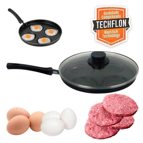 Frigideira 4 Em 1 Preta Com Tampa para Ovos e Hamburguer Frigideira Teflon 4 Ovos Antiaderente com Tampa ============================================================ Contém: 01 Frigideira 01 Tampa