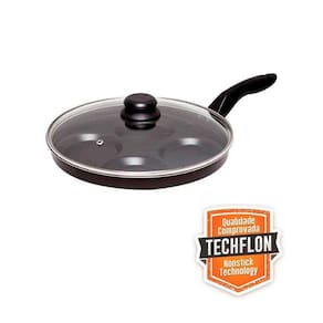 Frigideira 4 Em 1 Preta Com Tampa para Ovos e Hamburguer Frigideira Teflon 4 Ovos Antiaderente com Tampa ============================================================ Contém: 01 Frigideira 01 Tampa