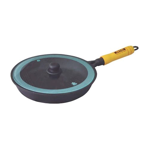Frigideira Alça Madeira Ferro Fundido Tampa de Vidro N20