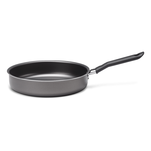 Para acompanhar as suas necessidades, a frigideira alta da linha Garlic está disponível em um formato diferenciado, mais alta e robusta, com Ø 24x5,5 e capacidade de 2 Litros. A estrutura de alumínio dissipa melhor o calor cozinhando o alimento por igual e mais rapidamente. Já o revestimento interno antiaderente evita que o alimento grude mesmo com uso reduzido de óleo. O material também facilita a limpeza. Sua segurança está garantida com o cabo de baquelite, que não aquece. A pintura externa poliéster está disponível nas cores vermelho e grafite. O ciclo de vida do produto pode variar conforme frequência e intensidade da utilização. O produto deve ser descartado (livre de materiais orgânicos) em coletores de resíduos seletivos. A logística reversa não é aplicável._x000D_
