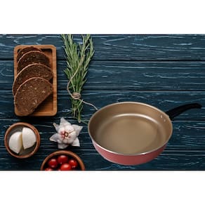 Cozinhar é a arte de misturar sabores e encantar, é na cozinha que a mágica acontece, que os amigos se reúnem, que as alegrias se multiplicam .... Beleza, charme, praticidade na hora de cozinhar, você vai se encantar por essas Frigideiras, sua cozinha merece esse mimo! Frigideira Alta 20 cm Antiaderente Com tampa de vidro, item indispensável na sua cozinha, produzido com alumínio de alta qualidade, espessura de 1,1 mm, peça com maior resistência e durabilidade, alumínio que distribui melhor o calor, proporcionando um cozimento mais rápido e uniforme do alimento, Frigideira Revestidas com 5 camadas de antiaderente TEFLON (DuPont) - PFOA Free, internamente e externamente, evitando que o alimento grude na superfície, o que facilita no preparo dos alimentos e proporciona praticidade no momento da limpeza. Possui cabo com espaçador metálico, feito em baquelite, um material antitérmico, que não retém calor, contribuindo para um manuseio mais confortável e seguro. Além disso, a frigideira acompanha uma linda Espátula de Nylon, ideal para a conservação e durabilidade do seu produto!Especificações Técnicas:Dimensões aproximadas - cm: (A x L x C):- 1 Frigideira Alta 20 cm Antiaderente – 5 x 21 x 36 cm- 1 Espátula de Nylon Material: Alumínio RevestidoRevestimento Interno: Antiaderente Teflon Pro-FlonRevestimento Externo: Antiaderente Teflon Espessura Material: 1,1mmCabo: BaqueliteTampa: Vidro com borda de Aço InoxPeso: 285 gPeso Embalagem: 170 gEmbalagem: Saco Plástico / Caixa PardaDimensões aproximadas da embalagem (AxLxP): 5 x 25 x 36 cmCuidados:- Antes de usar pela primeira vez, lave com esponja macia, detergente neutro, depois de secar, unte a área interna com óleo e aqueça em fogo baixo por 1 minuto. Deixe esfriar é só lavar e seu produto está pronto para uso, sempre em fogo baixo ou médio (nunca superior a 350°C);- Ideal para fogão a gás, elétrico e vitrocerâmico com resistência elétrica;- Para mexer os alimentos use somente utensílios de silicone ou nylon;- Nunca utilize solventes, objetos cortantes ou abrasivos e ou pontiagudos;- Mantenha o produto sobre a chama do fogão apenas o necessário para o cozimento;- Não exponha as alças e cabos diretamente ao fogo ou fonte de calor prolongado;- Não pode ser levada ao forno e/ou microondas;- Evite a imersão do produto quente em água fria. Sempre o deixe esfriar antes de lavar;- Para maior durabilidade do produto recomenda-se secar bem antes de guardar.Informações do Fabricante: Coisas & Trecos possui 18 anos de experiência no mercado de alumínio e utensílios para casa. A Coisas & Trecos tem como norte o desenvolvimento com estreitas e duradouras parcerias com fabricantes e fornecedores, com o objetivo de entregar aos seus clientes produtos de qualidade.Garantia do fornecedor: 30 dias contra defeitos de fabricação.Detalhes:- Com Antiaderente Teflon PFOA Free, que garante a ausência de elementos nocivos à saúde em sua composição- Ao comprar sua Frigideira Alta 20 cm Antiaderente, você receberá em seu endereço: 01 Frigideira 20 cm de diâmetro, na cor escolhida no ato da compra e uma Espátula. - Itens decorativos não acompanham o produto. Imagens meramente ilustrativas (a cor do produto pode sofrer alteração de acordo com a qualidade do monitor).- Para descarte dos produtos e embalagens siga as orientações de reciclagem vigente.Estamos à disposição para qualquer dúvida. Agradecemos a sua visita e aguardamos seu pedido!