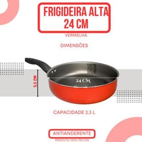 Frigideira Alta Funda 24 cm Antiaderente Teflon com Tampa de Vidro + Espátula Nylon Vermelho Frigideira 24cm com 5 camadas de Teflon Antiaderente com Tampa de Vidro + Espátula Nylon