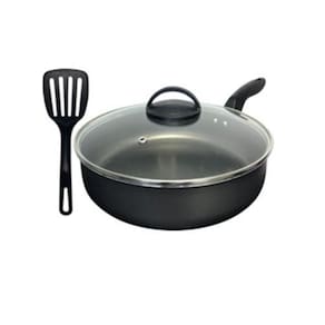 1x Frigideira 24cm Antiaderente Preta 1x Tampa de Vidro Temperado 1x Espátula Nylon Mimo :