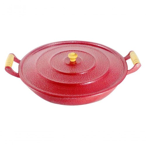 Frigideira Alumínio Fundido Craqueada Alça Madeira Trad Vermelha 36cm