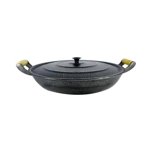 Frigideira Alumínio Fundido Craqueada Alça Madeira Trad Preta 36cm