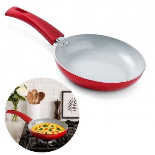 Material: Frigideira em Alúminio com Revestimento em Cerâmica e Cabo Revestido em Silicone