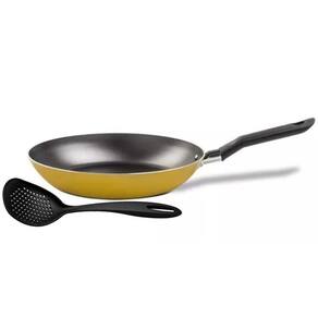Muito importante:-- conferir produtos no ato do recebimento. Não aceitar produtos com embalagem violada amassado, rasgado, aberto, quebrado, etc , a recusa deve ser feita no ato.Componentes do kit:1 - frigideira em alumínio antiaderente 22cm 1,20l fun colors mostarda - brinox 72323541 - espátula ability em nylon preto - tramontina 25155100frigideira alumínio antiaderente 1,20l mostarda brinox com espátula frigideira tramontinapara acompanhar as suas necessidades, a frigideira da linha fun está disponível no tamanho de 22x4cm com capacidade de 1,20 litros. A estrutura de alumínio dissipa melhor o calor cozinhando o alimento por igual e mais rapidamente. Já o revestimento interno antiaderente evita que o alimento grude mesmo com uso reduzido de óleo. O material também facilita a limpeza. Sua segurança está garantida com o cabo de baquelite que não aquece.A espátula tramontina ability em nylon preto vai deixar sua rotina na cozinha ainda mais prática. Perfeita para uso no dia a dia, ela é produzida em nylon e resistente a temperaturas de até 180c. Seu cabo possui furo passante, possibilitando que ela seja pendurada em cozinha e ainda sirva de utensílios de decoração. Ela ainda é ideal para uso em panelas com revestimentos antiaderentes e cerâmicos, pois não os danifica e ainda pode ir à máquina de lavar louças, facilitando seu dia a dia.: 90 dias de legal para vícios ou defeitos de fabricação.Informações técnicas:- material: alumínio- coleção: fun- lava louças: não- cor: mostardainformações técnicas utensílios:- material: nylon- coleção: ability- lava louças: sim- cor: pretodimensões:frigideira: 8cm a x 37cm l x 22,5cm pespátula - 30,2 a x 7,4 l x 4,2 p cmperguntas frequentes: - é resistente até qual temperatura180 grausfrigideira, alumínio antiaderente, mostarda, brinox, espátula, frigideira tramontina, utensílios de cozinha, frigideira antiaderente, qualidade em alumínio, design brinox, ferramentas de cozinha, cozinha prática, preparo de alimentos, utensílios para cozinhar, frigideira com espátula.